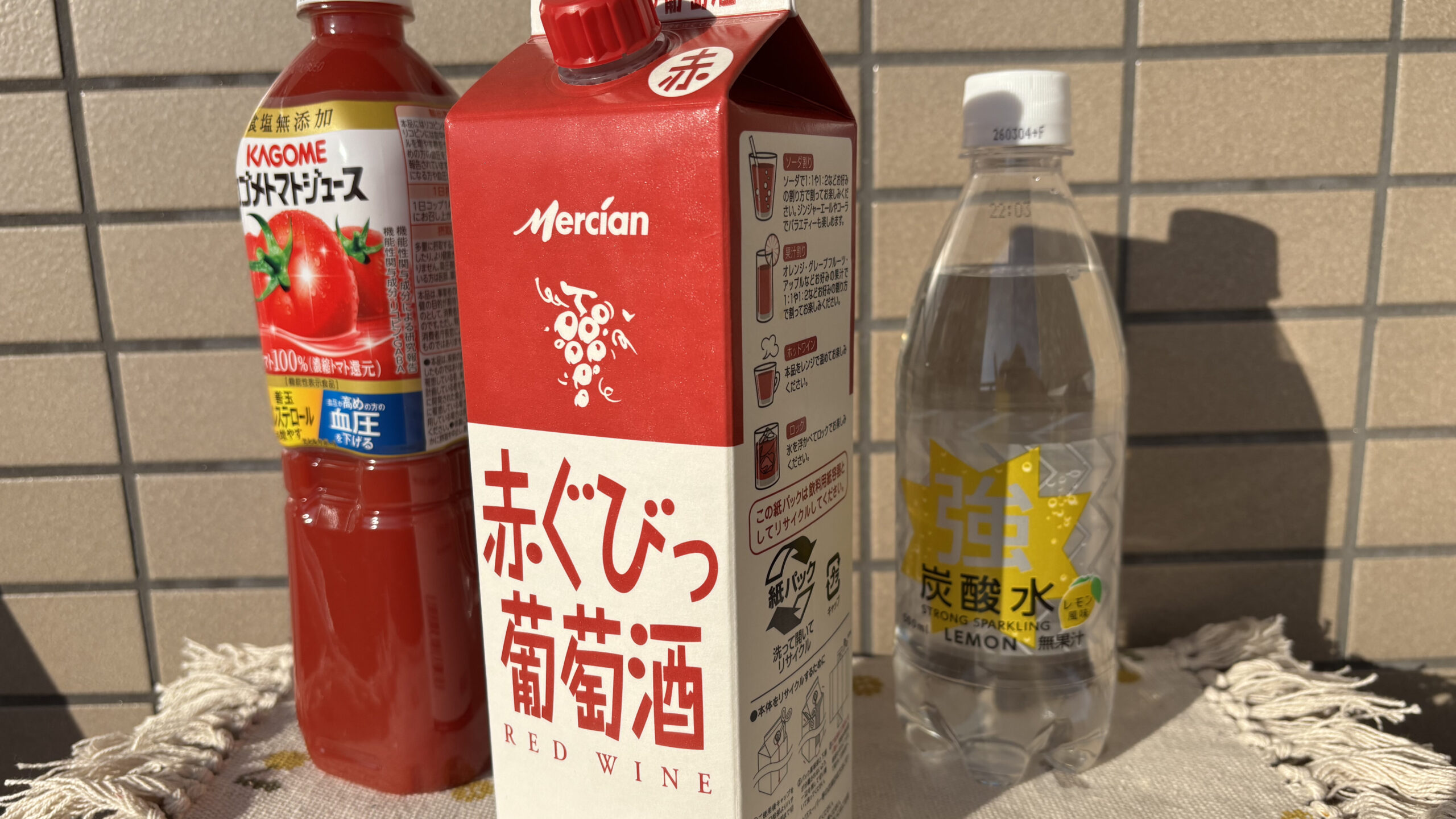 赤ワイン:トマトジュース:炭酸水=5:2.5:2.5